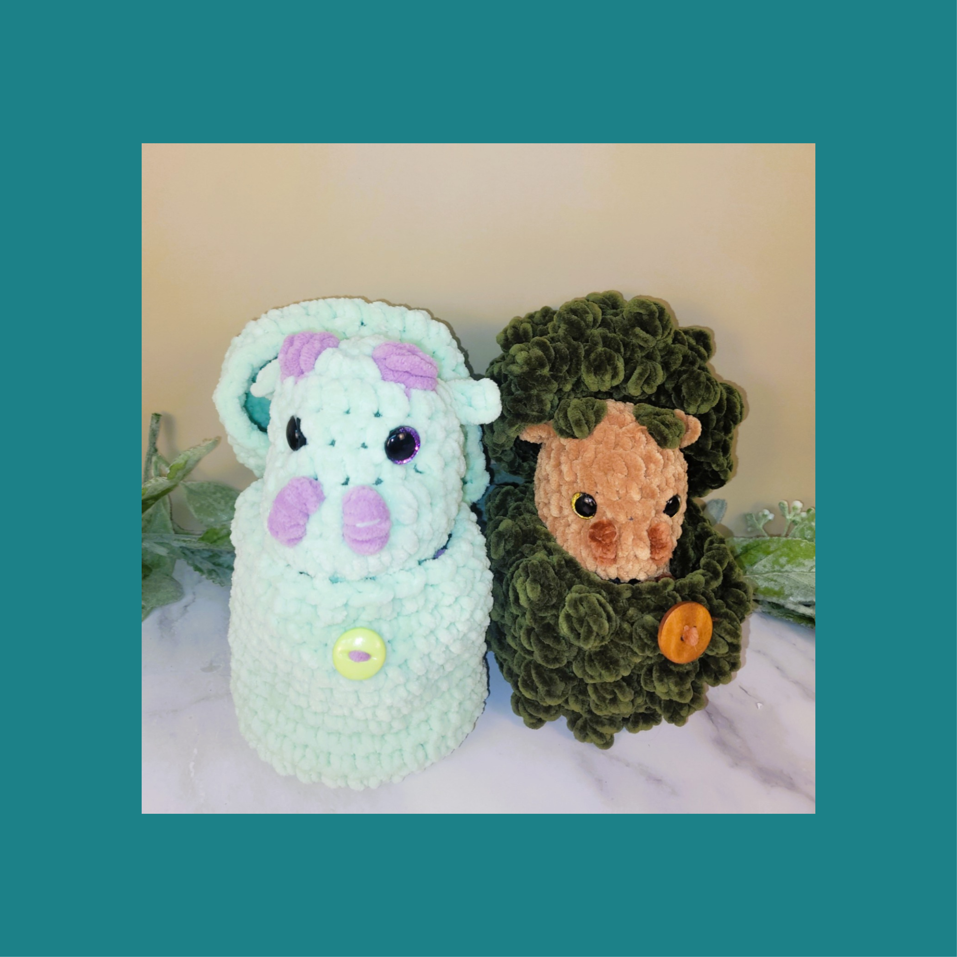 Adorable, crocheted baby dragons nestled in their own removable egg—the perfect handmade gift for dragon lovers of all ages. Each plush companion features safety eyes and is crafted from soft, cozy blanket yarn that's gentle to touch. The egg doubles as storage, making playtime even more magical. These charming creatures spark imagination and make wonderful nursery décor or cuddly companions for little ones.