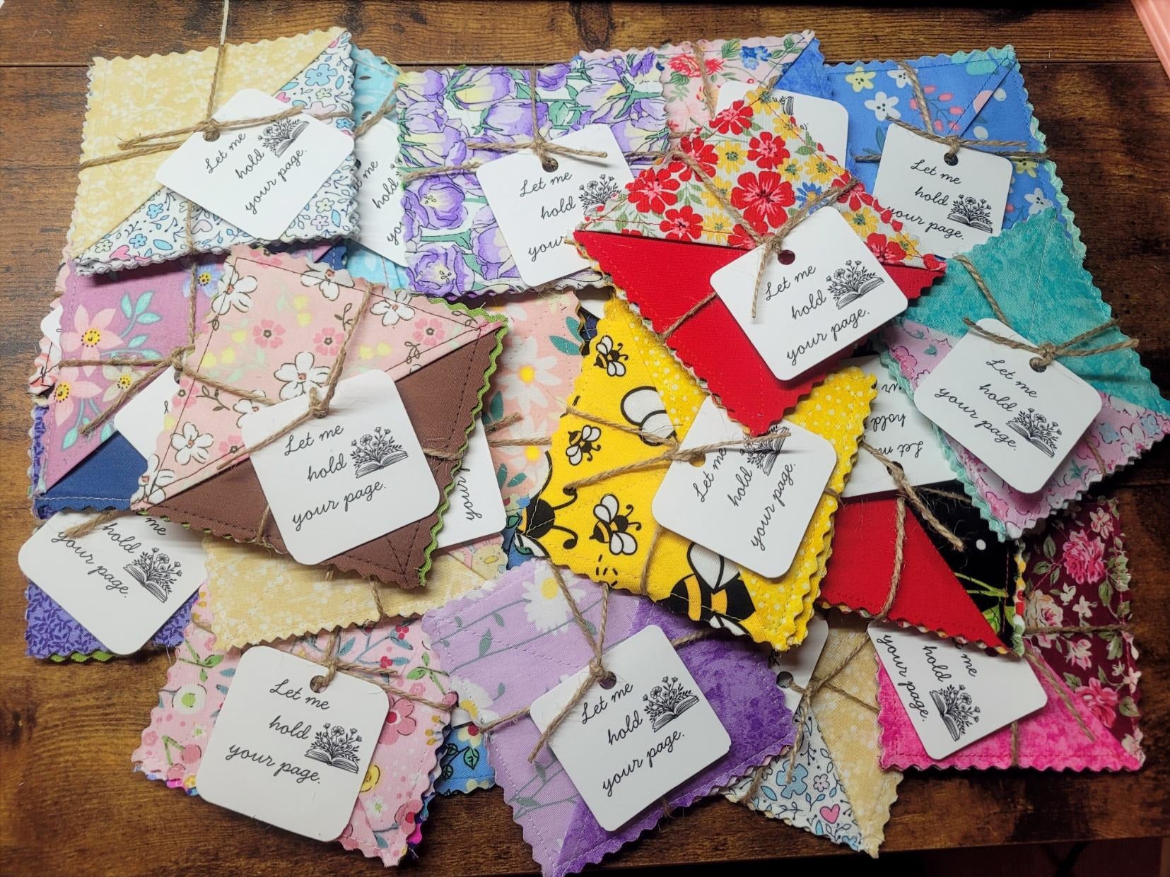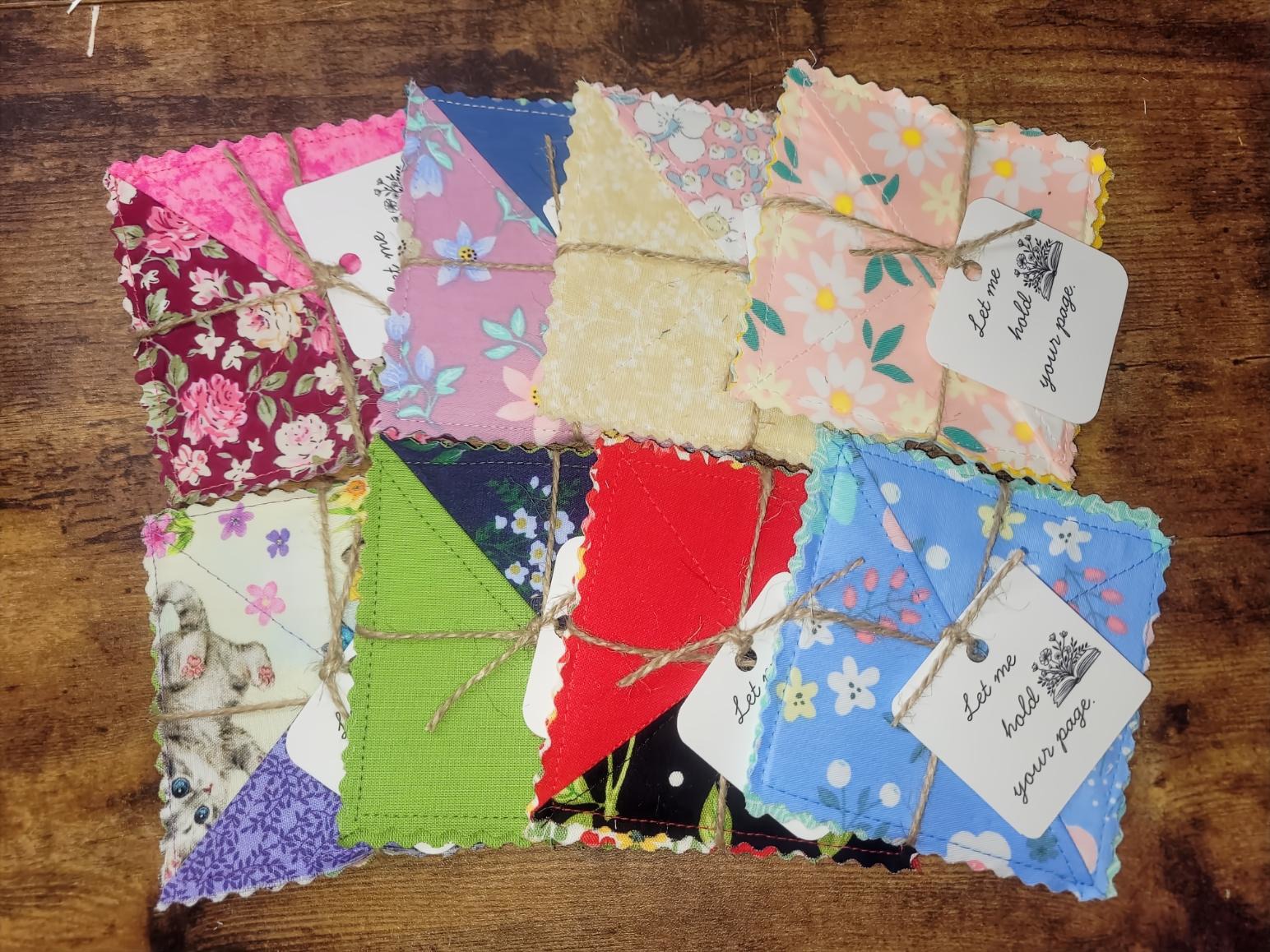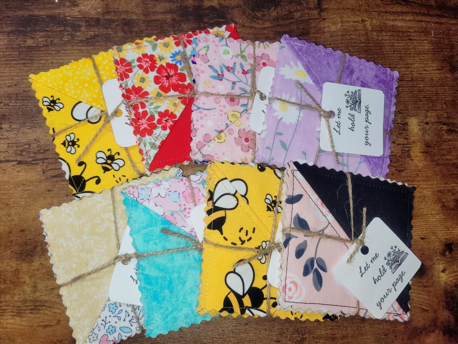 Elevate your reading experience with these elegant fabric corner bookmarks, expertly crafted from high-quality quilting cotton. Simply slip them over your page corner to mark your spot without dog-earing or damage. These versatile bookmarks blend functionality with style, featuring vibrant patterns that reflect your personality. Whether you're a devoted bookworm or searching for the perfect gift, these charming accessories make reading more enjoyable while protecting your beloved books.