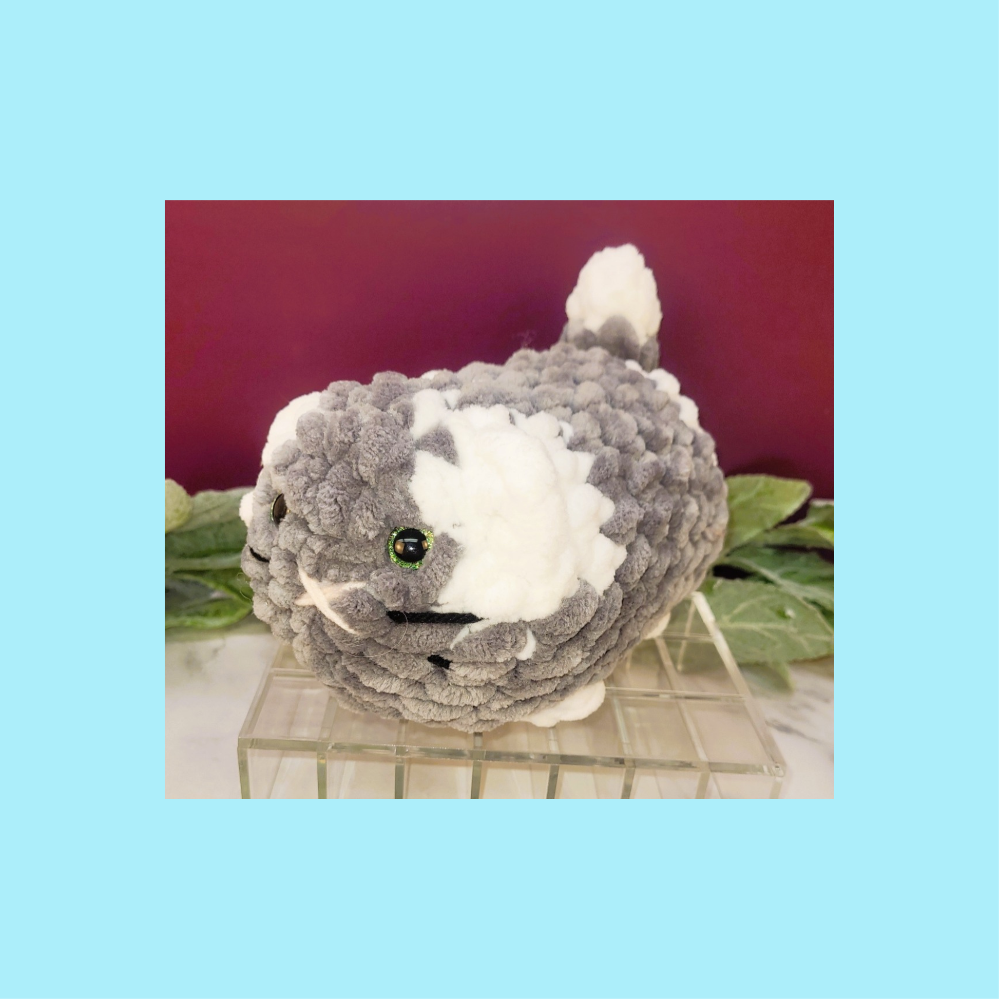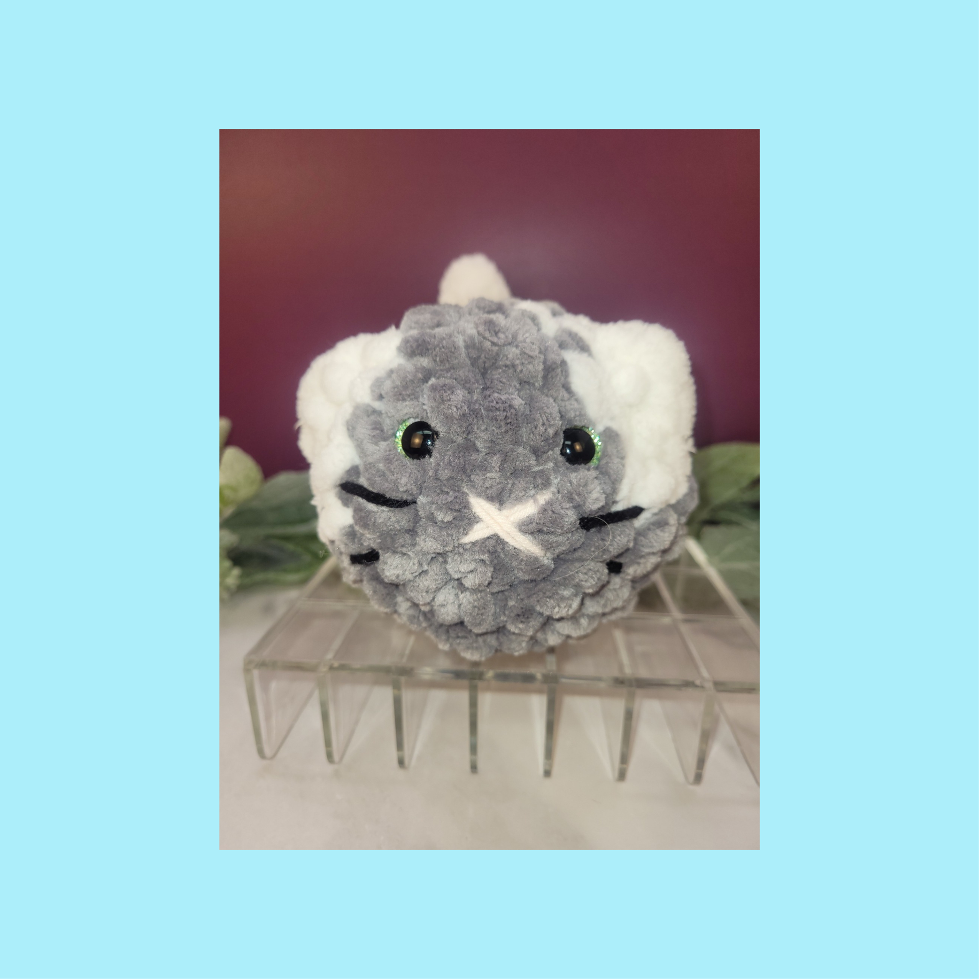 Meet Felix the Feline, a delightfully oversized crocheted cat crafted from sumptuous thick blanket yarn that's irresistibly soft to the touch. This charming companion features enchanting green safety eyes that seem to sparkle with personality, while embroidered details bring Felix to life—a sweet nose, playful mouth, and delicate whiskers that capture feline charm. Perfect as a cuddly friend, decorative accent, or heartfelt handmade gift, Felix combines artisanal craftsmanship with cozy comfort. Each stitch is made with care, creating a one-of-a-kind plush pal that's sure to become a beloved favorite.