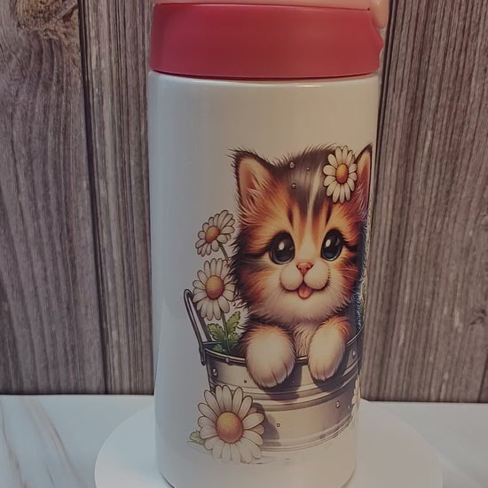 Here, Kitty Kitty, insulated 12 oz. steel flip top tumbler