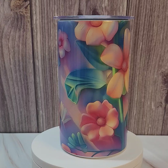Florals insulated 12 oz. steel tumbler, screw on lid