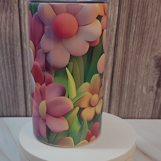 Pretty florals insulated 12 oz. steel tumbler, screw on lid