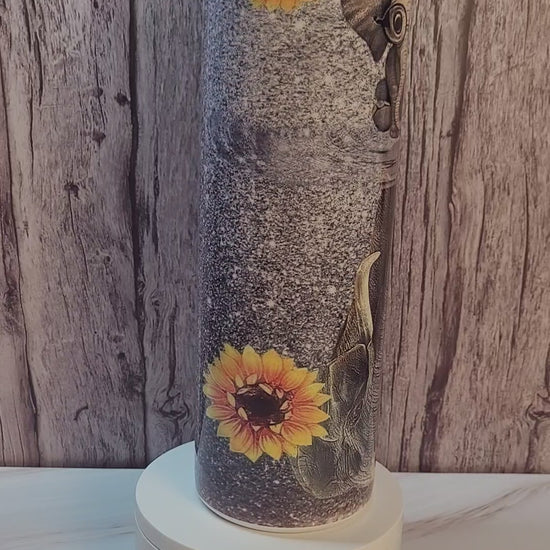 Keep your drinks at the perfect temperature with our 30 oz steel tumbler! The double walled insulation allows you to enjoy hot or cold drinks without worrying about them losing their temperature. Bring a touch of unique style to your daily routine while staying hydrated.