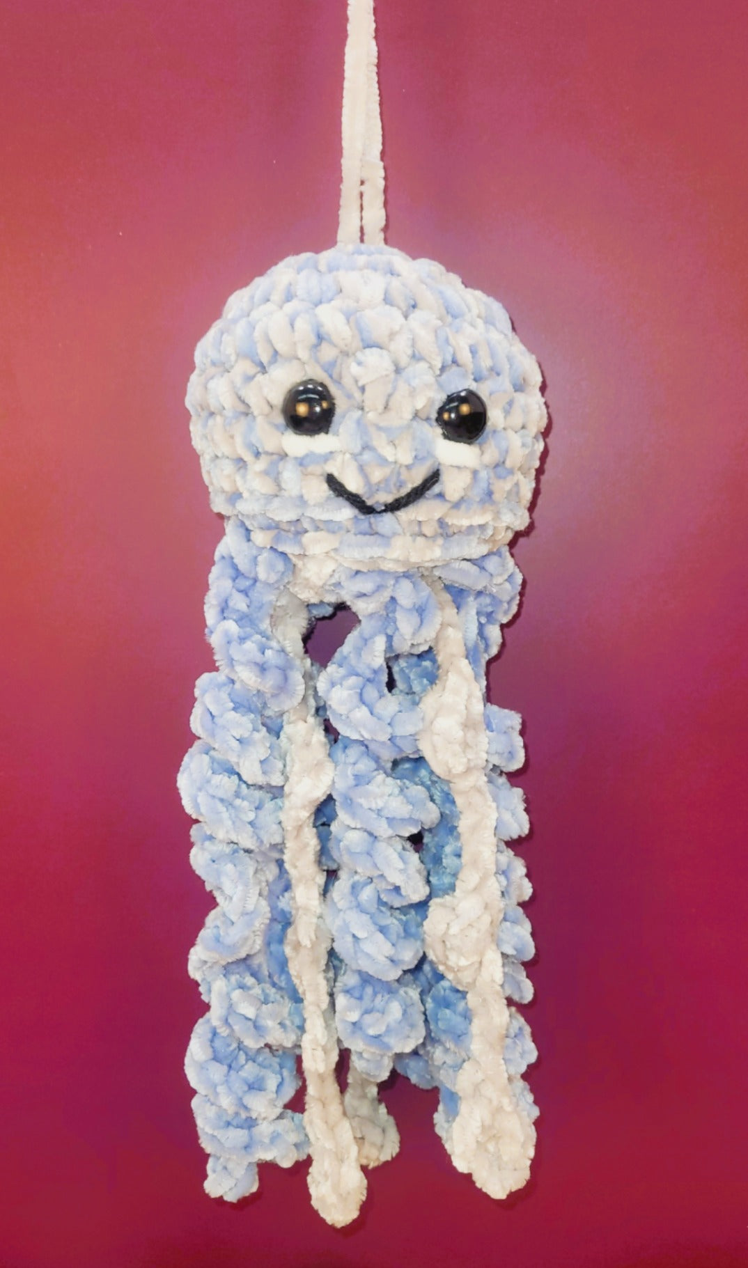 Meet Jersey the Jelly Fish—a delightfully squishy companion crafted from luxuriously soft velvet yarn that begs to be hugged. Each plushie features securely reinforced safety eyes, making it a worry-free cuddle buddy. Hand-crocheted with care, Jersey brings whimsical ocean charm to any collection. Perfect as a gift or a treasured keepsake, this adorable jellyfish plushie combines comfort, safety, and handmade artistry in one irresistible package.