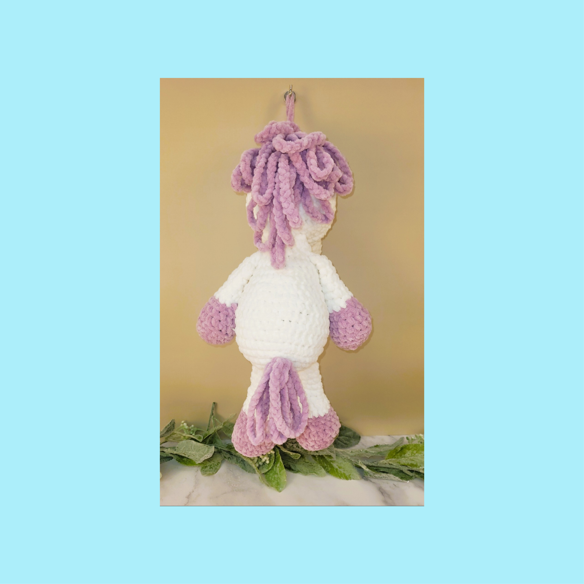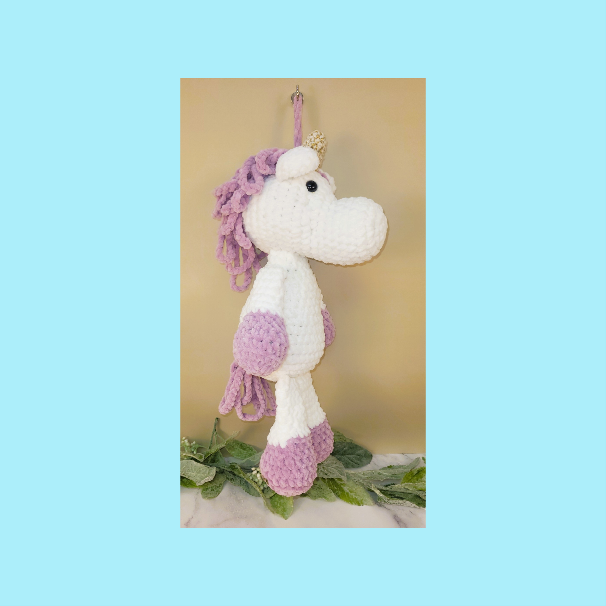 Meet Lilac, a charming, crocheted unicorn crafted from luxuriously soft blanket yarn that's perfect for cuddling. With expressive black safety eyes and delicate details, this handmade companion brings whimsy and warmth to any space. Ideal for children who love magical creatures or collectors seeking unique, artisan-made pieces. Lilac makes a thoughtful gift that combines comfort with imaginative play.