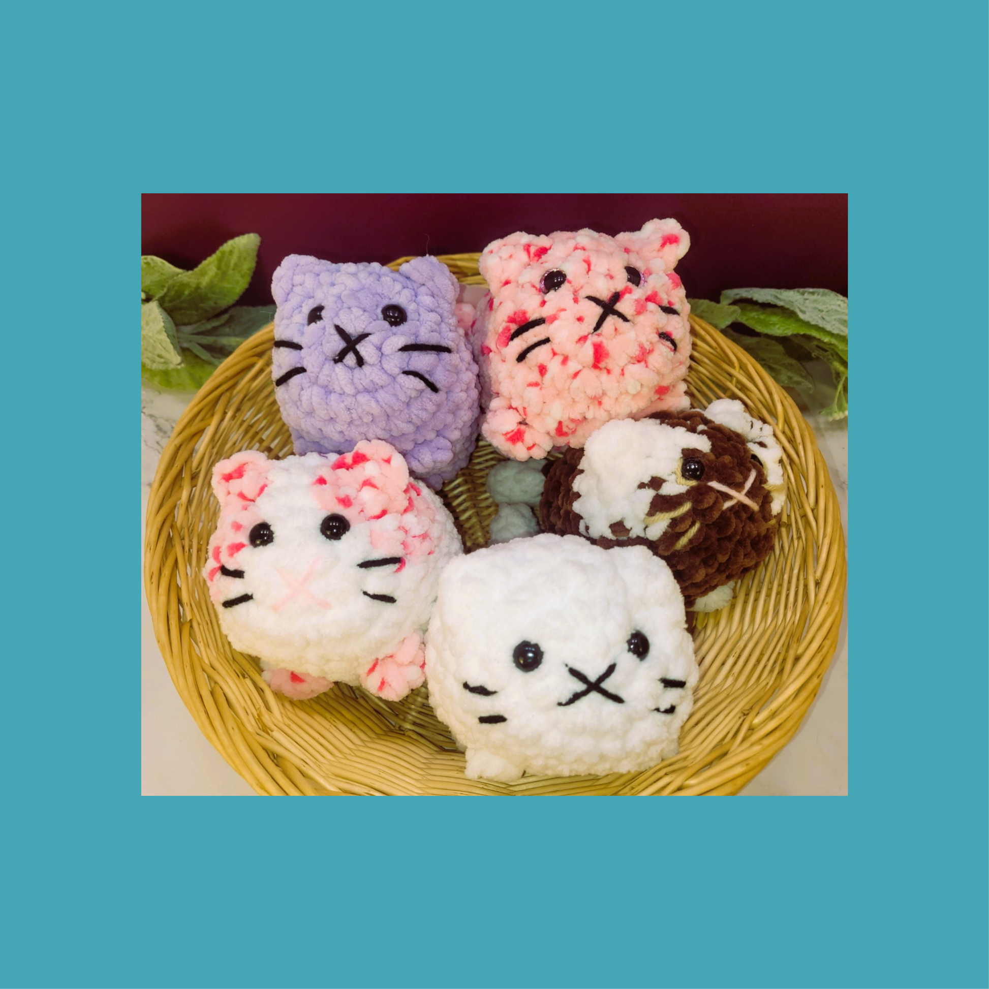 Meet your new favorite cuddle companion, Loaf Kittens! These irresistibly adorable plushies feature a perfectly round loaf-shaped body that's impossibly soft, crafted from luxuriously cozy blanket yarn. Each kitten comes to life with charming safety eyes and delicate embroidered details including a sweet mouth, nose, and whiskers. Complete with an adorable little tail and a precious bum, these pint-sized felines are designed to bring warmth and whimsy to any space. Perfect for snuggling, collecting, or gifting to the cat lover in your life, Loaf Kittens combine playful charm with irresistible softness that makes them impossible to put down.