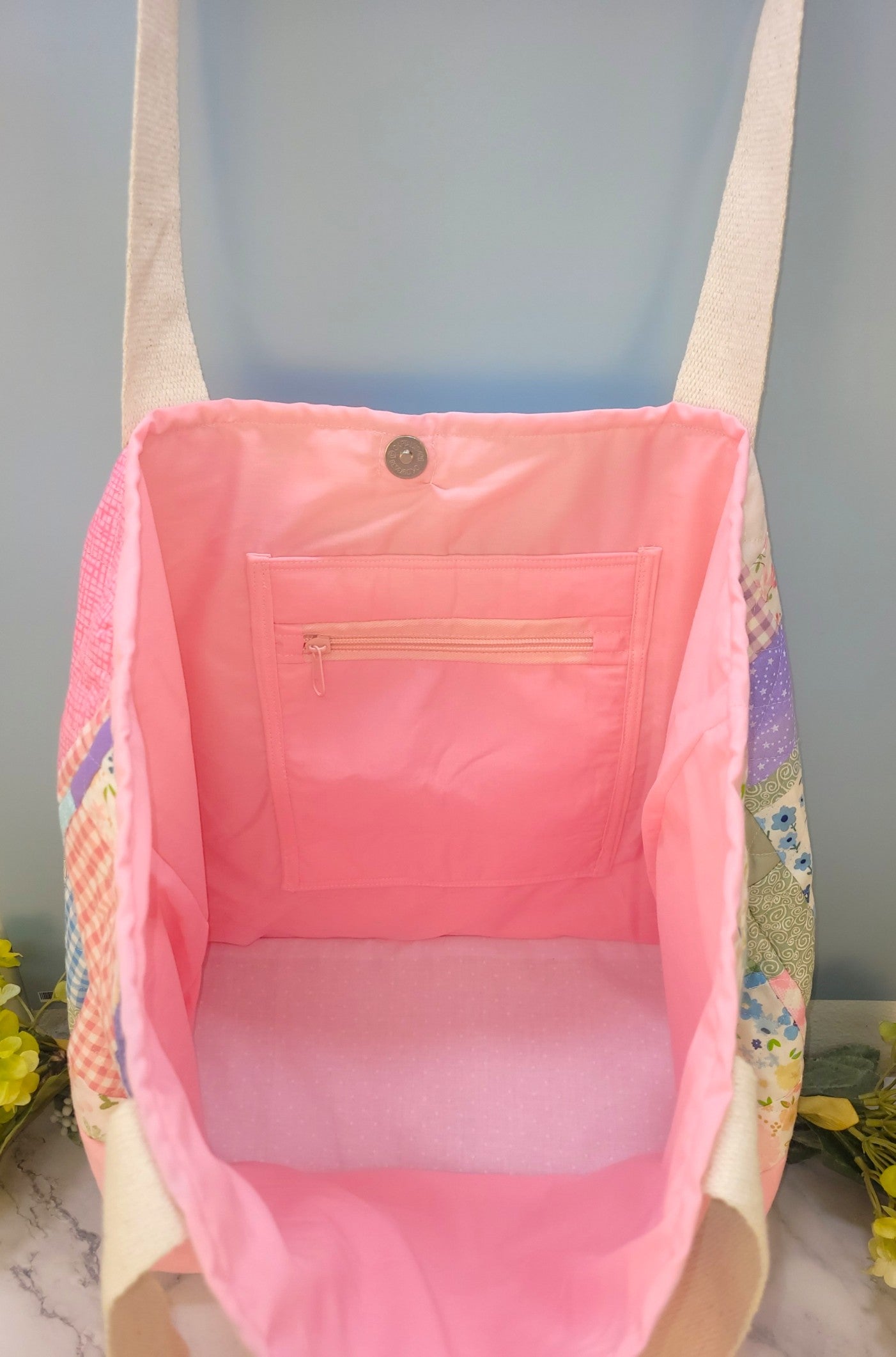 This custom patchwork tote bag is one of a kind and perfect for those weekend get-a-way trips, or for a full day of shopping. This bag also makes a great gift for Mother’s Day, birthdays, graduation, Christmas, and every other celebration!