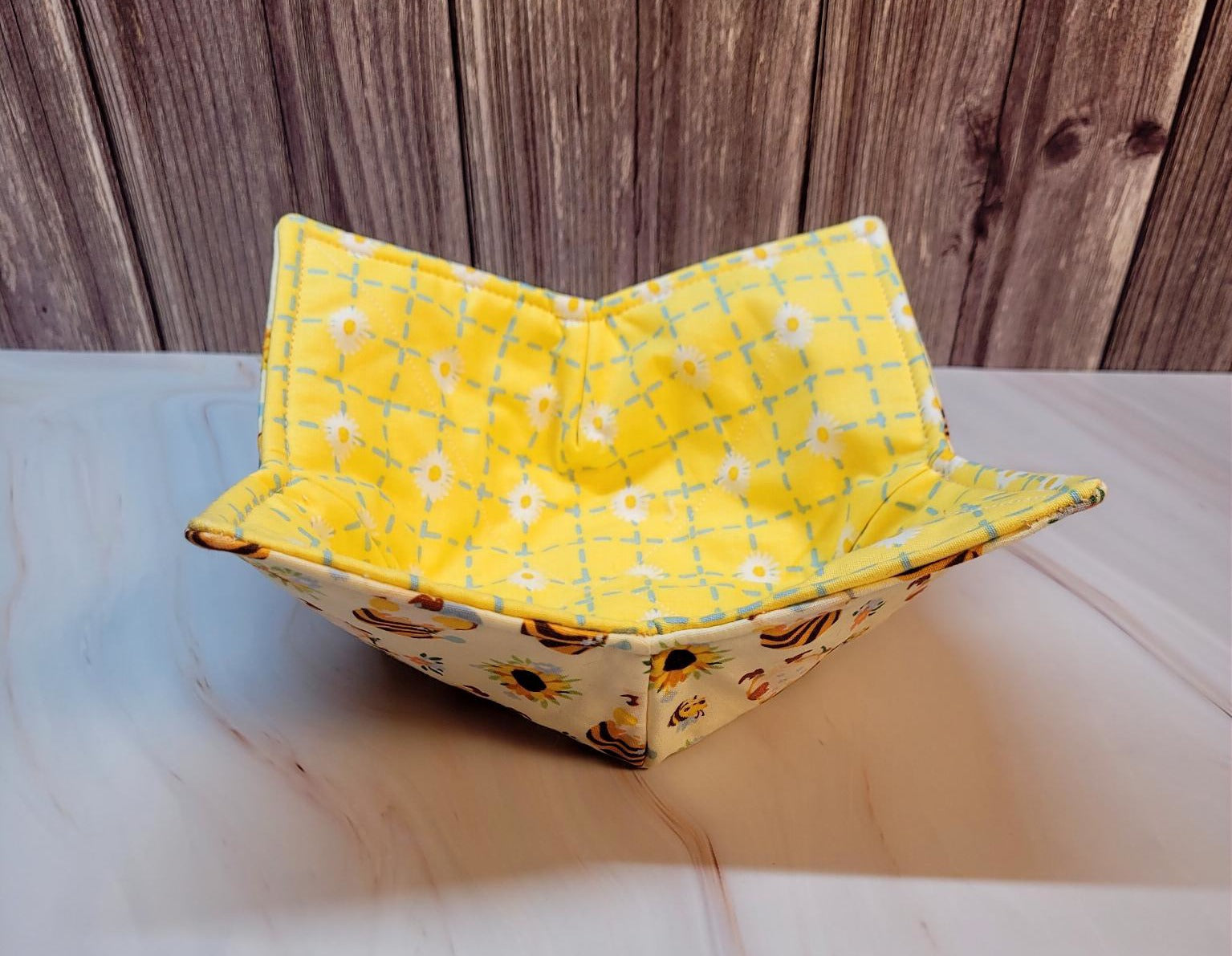Keep your hands safe and comfortable with this essential set of 2 quilted bowl cozy set. Made from 100% cotton fabric with two layers of microwave-safe cotton batting, these cozies provide superior insulation against heat from hot bowls. Also great to use when enjoying cold ice cream! Durable and easy to care for, this two-piece set is a thoughtful investment in kitchen safety and comfort. Did I mention, they are reversible? Recommended use in microwave 2-minute intervals.