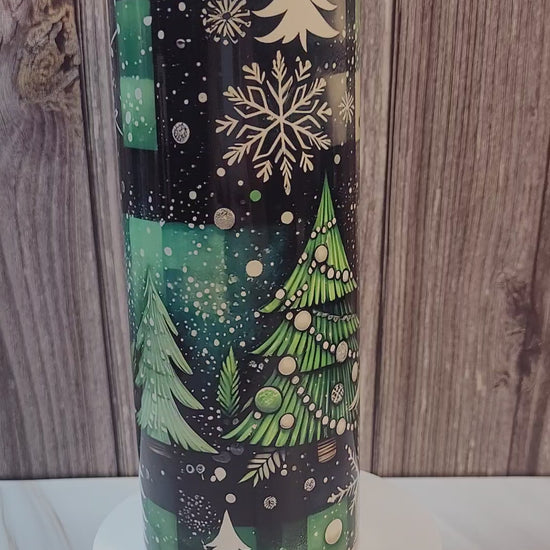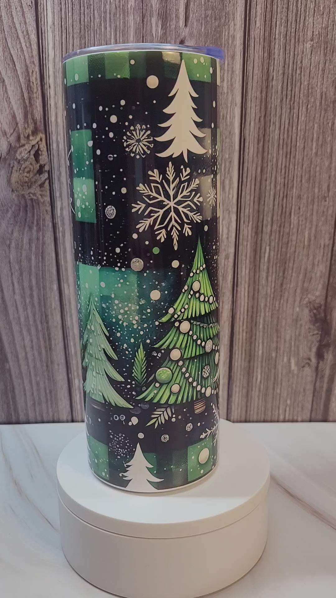 Stay hydrated in style with our skinny insulated 20 oz. steel tumbler! The double walled insulation keeps your drinks at the perfect temperature while the adorable Christmas trees design adds a touch of festive cheer. Enjoy your favorite beverages on the go with this durable and stylish tumbler.